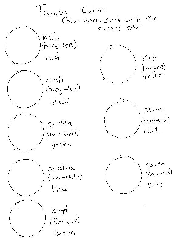 TaWaKa is the Tunica word for "sub-commander." We currently produce a monthly newsletter that features stories, games, vocabulary lists and a coloring page! 10-04-03 New Language Lesson and Story In time for Halloween it is the story of the stone witch. Practice your Tunica pronunciation by following the phonetic spelling. Also tell this story to your friends in English and Tunica as the translation is included.08-31-03 New Language Lessons Color Words Sheet (click and print activity) 06-29-03 New Stories!! 06-08-03 Just Added! The Tunica-Biloxi Dictionary Coloring Book. Click here.Listed below are links to stories that are now on-line! |