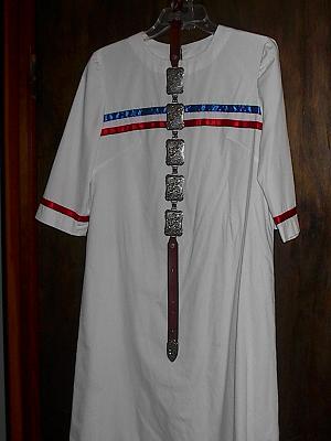 The red, white and blue ribbons that are worn on the dresses of the women and shirts of the men today seem to be the influence of historical events and that of the Creek, who like the Tunica, observed the Green Corn ceremony. Although the Creek and the Tunica have similar ceremonial rights it�s noted that the idea of Green Corn celebration is of different meaning to each group.