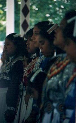 A group of women social dancers at the Choctaw Indian Fair 2003. |