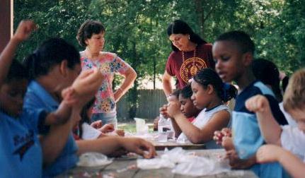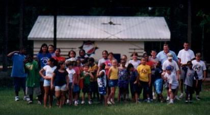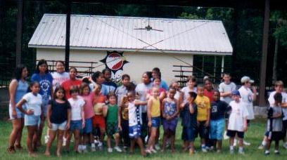 Group shots with campers and Nerataya team members at the 2003 Tunica-Biloxi Youth Camp. |