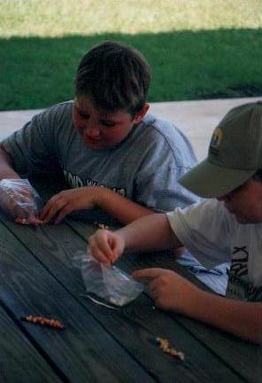 Campers doing beadwork at the Tunica-Biloxi Youth Camp 2003.