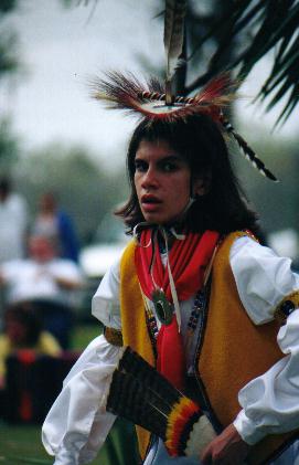 A fancy shawl dancer at the "Calling of the Tribes" in Bourg, LA. Summer 2002. |