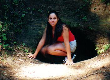 Elisabeth Pierite emerges from the Nanih Waiya mound cave. Elisabeth�s grand mother Fannie Pierite is a member of the Choctaw tribe.