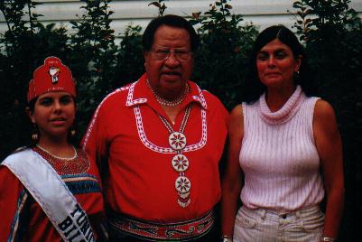 Chief Phillip Martin (center) poses with Tunica-Biloxi Jr. Princess Elisabeth Pierite and her mother Donna.