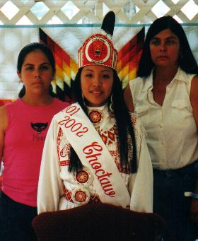 Elisabeth and Donna Pierite pose with the 2001-2002 Choctaw Indian Princess Shawntye Nicole Vaughn. |